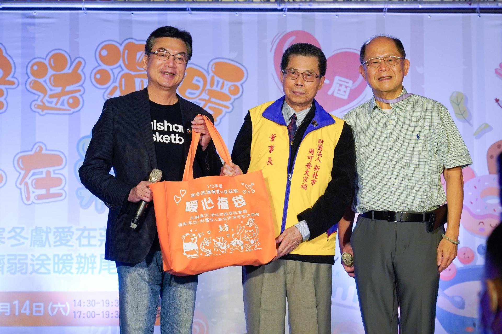 周可安大宗祠董事長周吉雄表示,自100年開始響應新北市政府社會局公益活動,10年來愛心不間斷,去年首次參與莊敬圍爐捐贈暖心福袋,感受到師生的用心和參加民 眾的開心,因此今年再次捐贈,希望大家都可以滿載而歸。