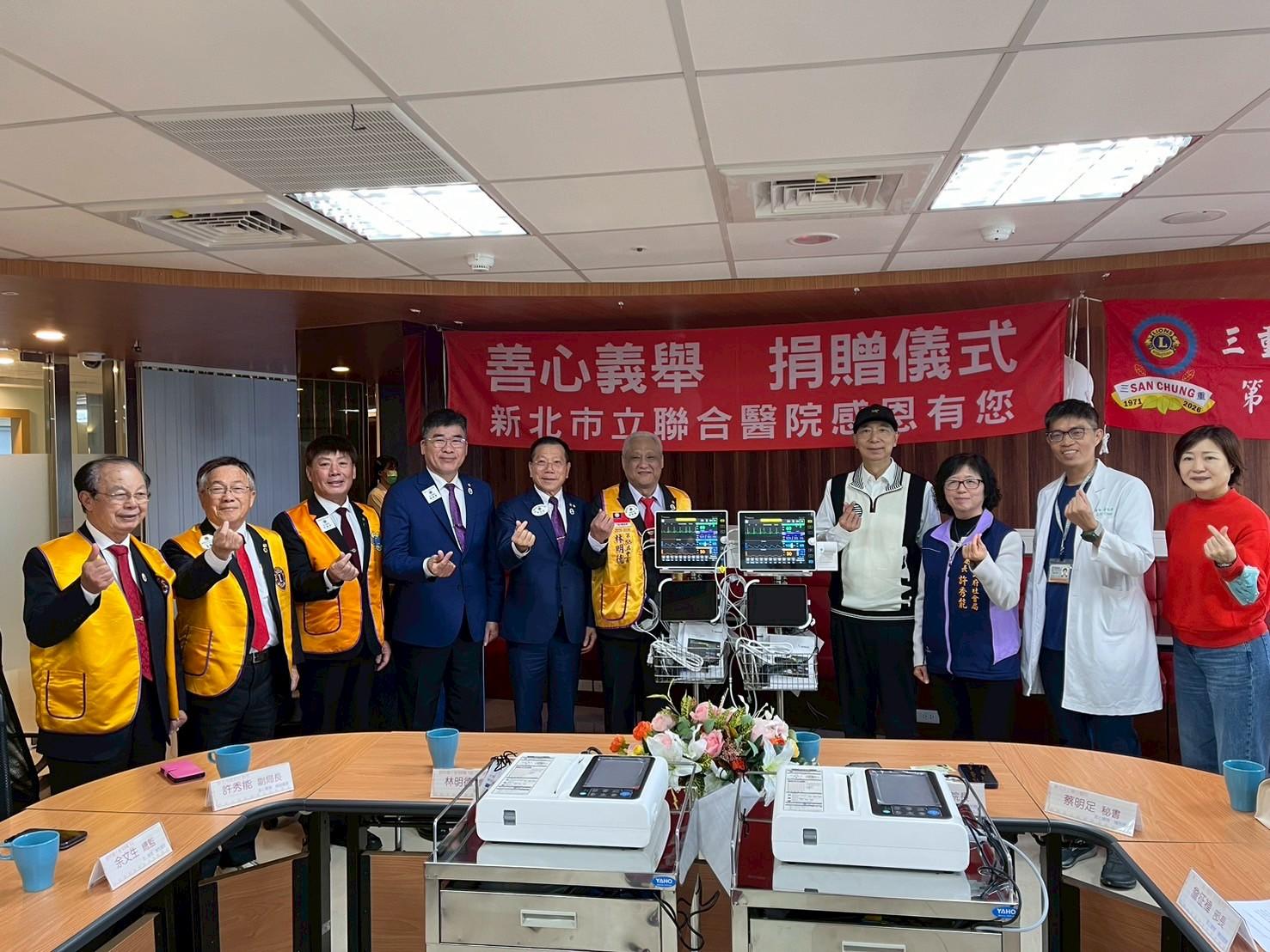 「三重獅子會提供新北聯醫2台生理監視器及2台十二導程心電圖機」...
